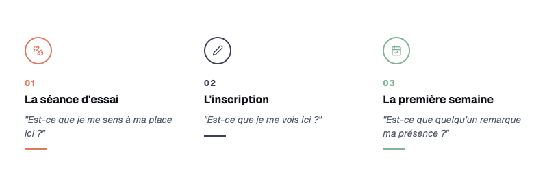 Une liste de 5-6 "missions" à compléter dans le premier mois. Essayer 2 coachs différents. Faire la séance en team du samedi. Apprendre le prénom de 5 autres adhérents. Rien de fou. Juste des raisons d'explorer la salle, de parler à des gens, d’appartenir à la communauté. Ça gamifie et ça donne des sujets de conversation naturels avec l'équipe.